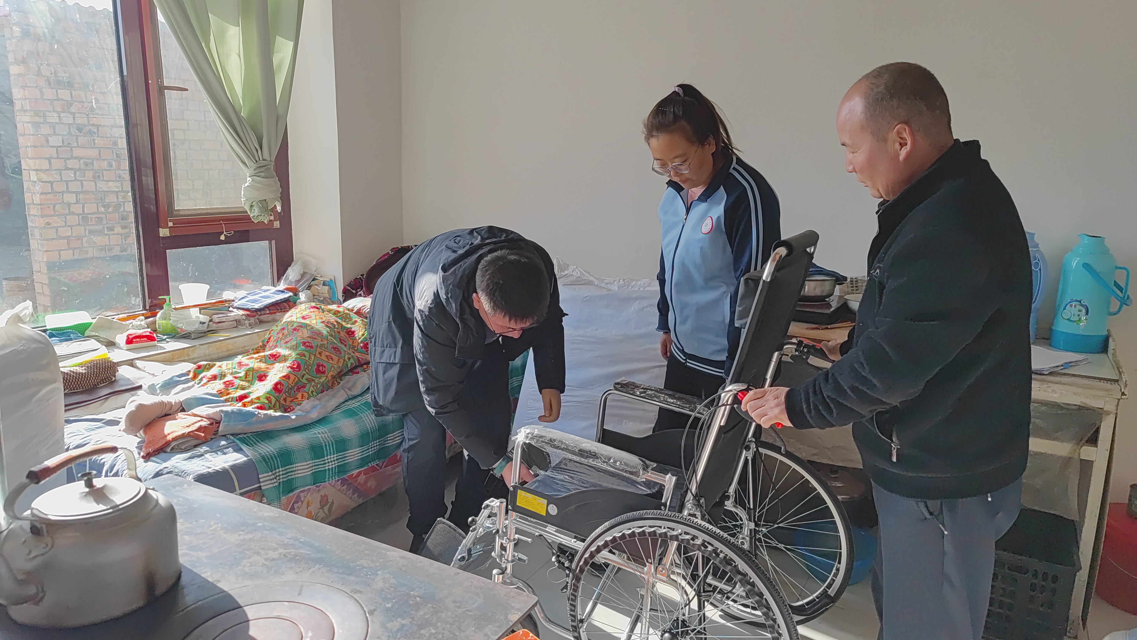 三营镇“残疾人之家”工作人员为残疾人上门代送轮椅。