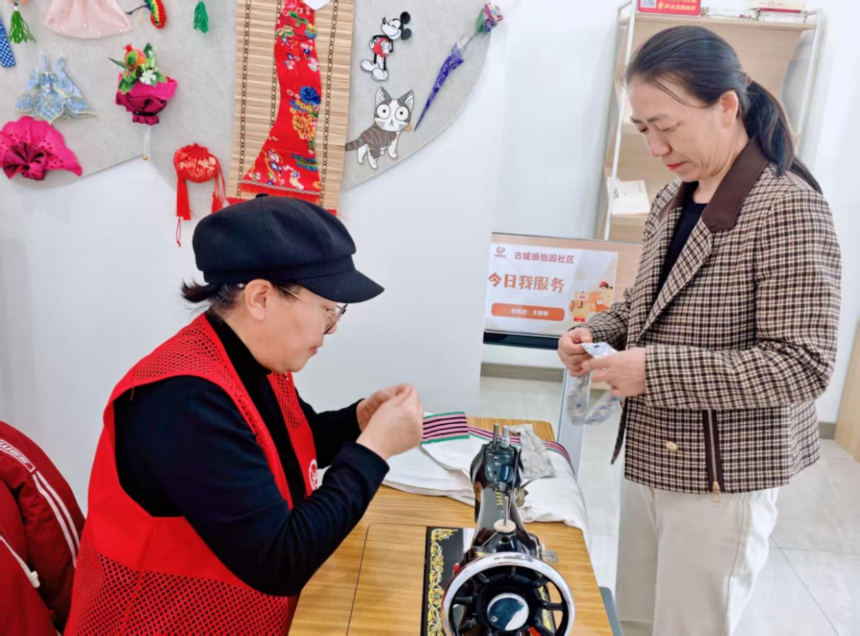 “在家门口就有志愿者给收拾裤子,这项服务真是太贴心了。”和府小区居民刘淑芳摸着裤腰上新绣的石榴花补丁,笑着夸赞“小修小补”。